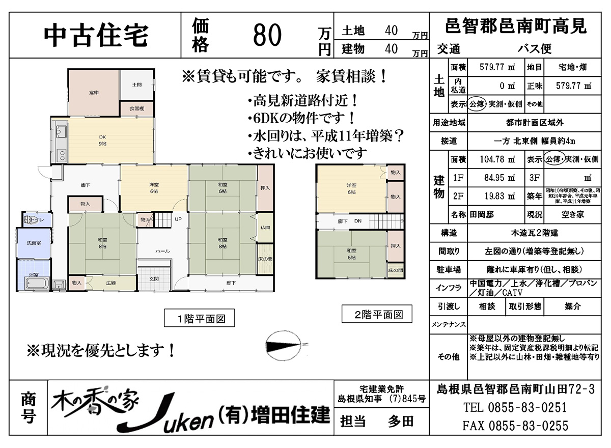 | 物件住所 | 邑南町高見 |